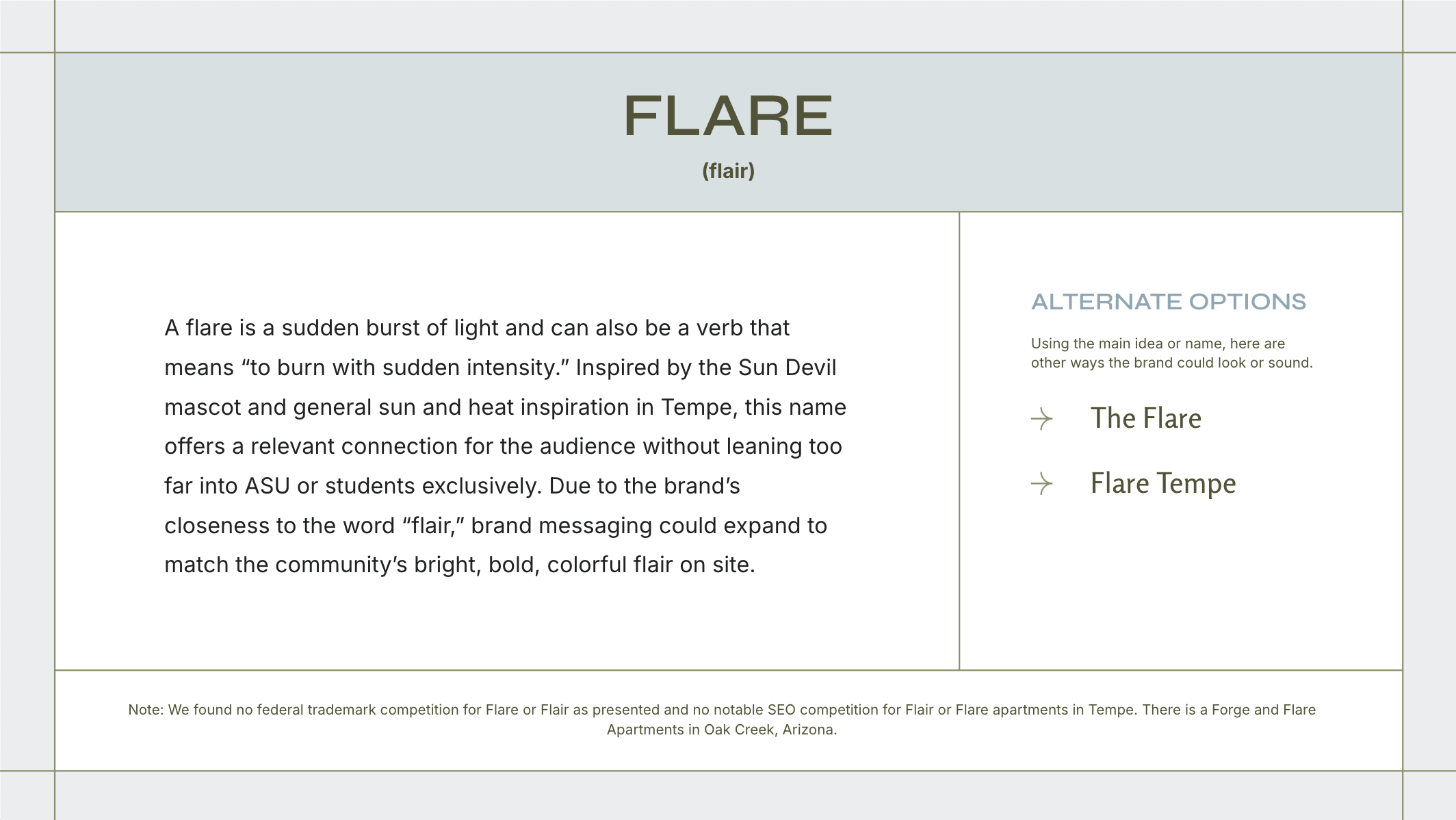 The client chose Flare in the first round with no edits.